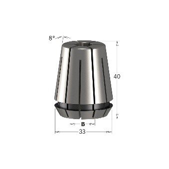 Pinze biconiche intercambiabili Std “ER32” (3-4-6-8-10-12-12,7-14-16-18-20mm) con intagli assiali intercalati e contrapposti per il serraggio cilindrico dell’utensile.